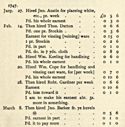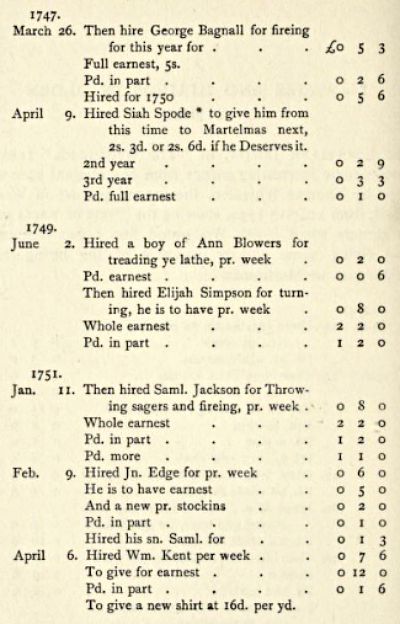 from 1747 to 1754, showing the "rate of wages paid to potters when