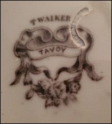 ![]() T W SIMLA is the pattern name this pattern and mark is probably correctly attributed to Thomas Walker however there were a number of North Staffordshire potters of this period with the initials TW |