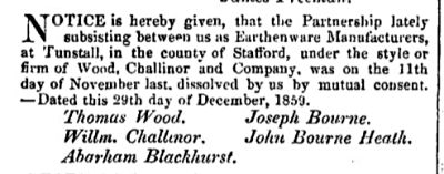 John Bourne Heath and Abraham Blackhurst were also partners in Wood, Challinor & Co