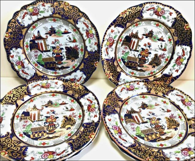 ![]() six desert plates in the Imari style pattern 5474 some plates were made by John Ridgway