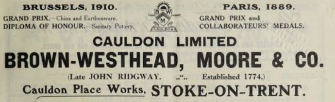 Subsequently: Cauldon (Brown-Westhead & Moore) Ltd. [1905-20]