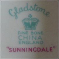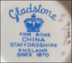 ![]() Gladstone Fine Bone China Staffordshire England Since 1870 |