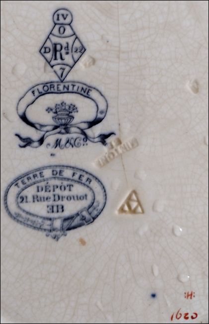 These patterns were designed and registered by Minton & Co but were produced by Mintons sometime 1891 onwards. The inclusion of the country of manufacture 'ENGLAND' was a requirement of the US McKinley Tariff Act. |