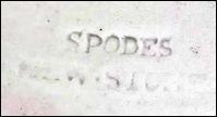 Copeland gives a date of 1815-33 "..it was used on all the bodies up to the end of the Spode period. It may be distinguished... by the serifs on the S. It is frequently found with numbers below it: these are thought to be clay-workers' marks" |