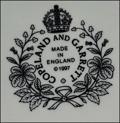 Around 1997 Spode Ltd introduced a reproduction of the Copeland & Garrett mark as a part of a marketing campaign, although the ware was newly designed and not reflective of the original. In 2007, when the business was in financial difficulties, most of Spode’s manufacture was outsourced to the Far East. Ware without the "Made in England" mark was made abroad.