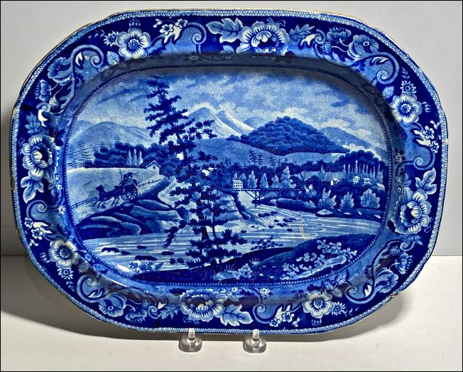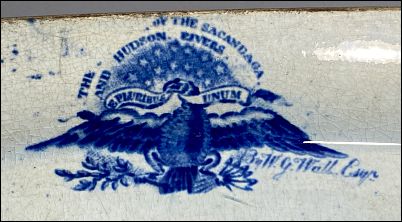 The view on this platter belongs to a class of ceramics produced in England specifically for the American market, often featuring patriotic or landscape scenes. this