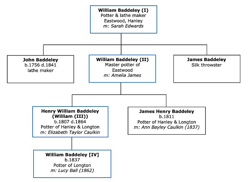 Summary of four generation of the Baddeley family of potters