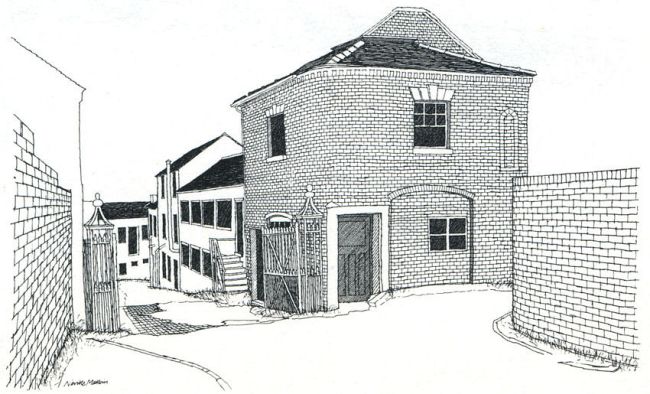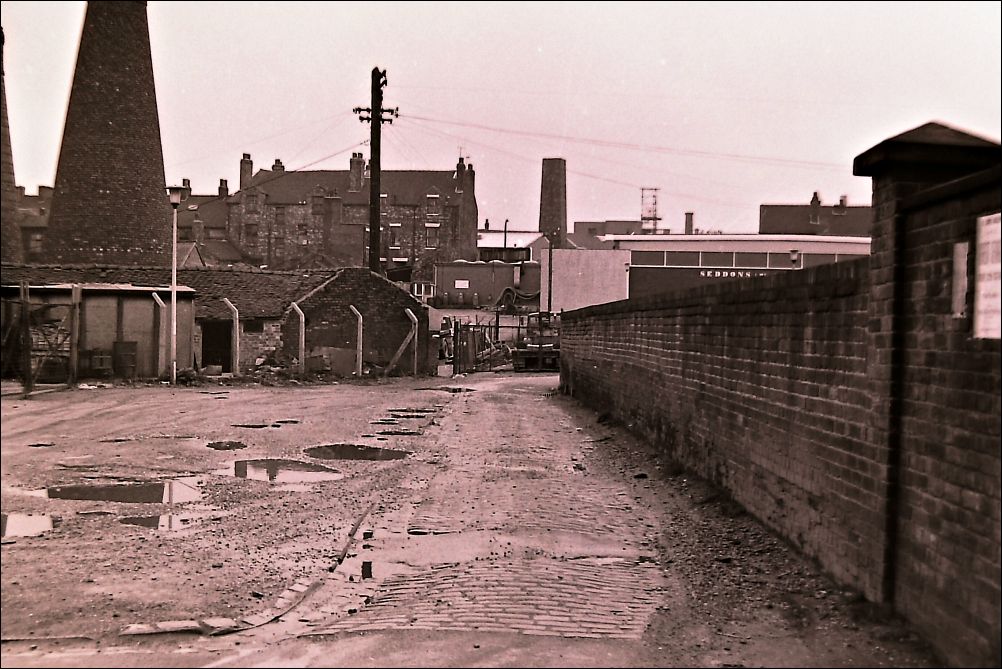 "Originally the main route from Newcastle-under-Lyme to Burslem ran to Longbridge (renamed Longport following the arrival of the canal), then through Trubshaw Cross and followed the route of Newcastle Street for about half its length before running on a more northerly line to Pack Horse Lane in Burslem. This road was turnpiked in 1763 but by the early 19th century the Pack Horse Lane element was replaced with the present route of Newcastle Street, so that by 1828 Pack Horse Lane was sold off for development. Enoch Wood bought the stretch that ran through his Fountain Place Works and this is the only remnant of the original eastern half of the road."