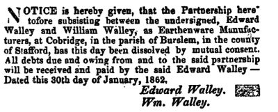 Walley Cobridge Staffordshire |