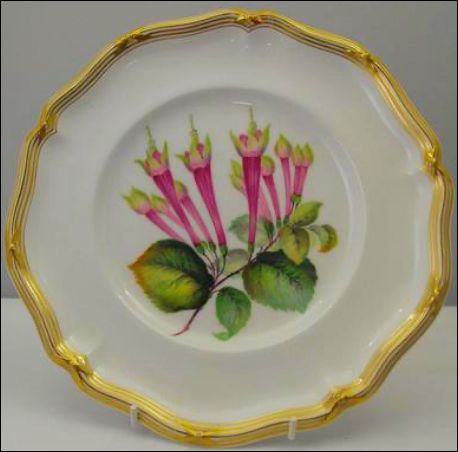 (probably in the 1830-45 period) a series of plates decorated with a hand painted, accurately coloured representation of different flowering plants. Most, if not all, of the illustrations were direct copies of those appearing in