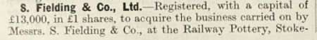 announcement of the incorporation of S. Fielding & Co
