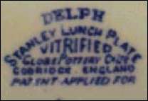 ![]() Delph Stanley Lunch Plate Vitrified Globe Pottery Co Ltd Cobridge England Patent Applied For |