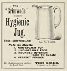 ![]() jug by Grimwades in their Adam Style pattern introduced c.1904 The name of the pattern is 'Adam' after the famous neo-classical architect and designer Robert Adam |