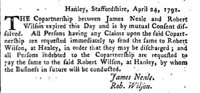 appears that James Neale sold the Churchyard Works to Robert Wilson