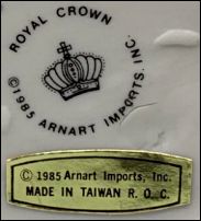 ![]() Royal Crown ©1985 Arnart Imports, Inc. Made in Taiwan R.O.C. |
