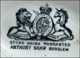 ![]() Opaque Stone China TRADE MARK Anthony Shaw & Son England |