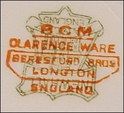 NOTE: There was an unrelated Clarence Street Works in Hanley. There was an unrelated Crown Clarence Works in Longton which was operated by Bradleys (Longton) Ltd - they used 'Clarence' in some of their marks. The Co-operative Wholesale Society operated the Crown Clarence Works after Bradleys. The CWS used the trade name 'Crown Clarence' |
