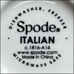 ![]() Est. 1770 Spode ® England Italian c.1816 Made in Stoke-on-Trent England |