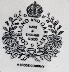Around 1997 Spode Ltd introduced a reproduction of the Copeland & Garrett mark as a part of a marketing campaign, although the ware was newly designed and not reflective of the original. In 2007, when the business was in financial difficulties, most of Spode’s manufacture was outsourced to the Far East. Ware without the "Made in England" mark was made abroad.