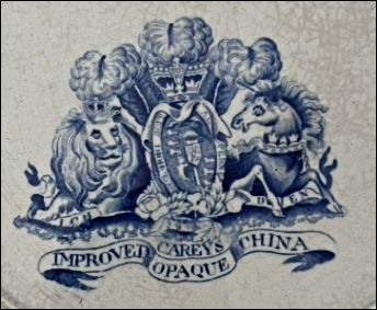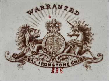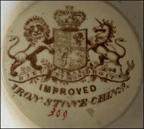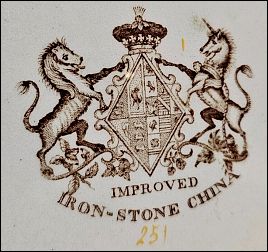 |  Improved Iron-Stone China The complex arms in the backstamp are those of Princess Victoria of Saxe-Coburg-Saalfeld (the mother of Queen Victoria), |