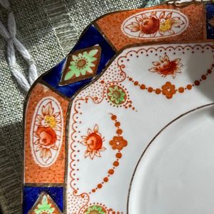 ![]() crudely decorated trio by H. J. Colclough in a European Imari style pattern 1897-1937