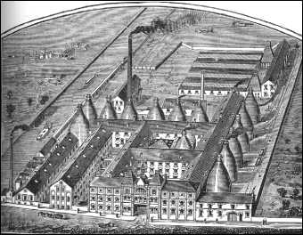 Cliffe Vale works of Twyfords On Shelton New Road - to the left the road